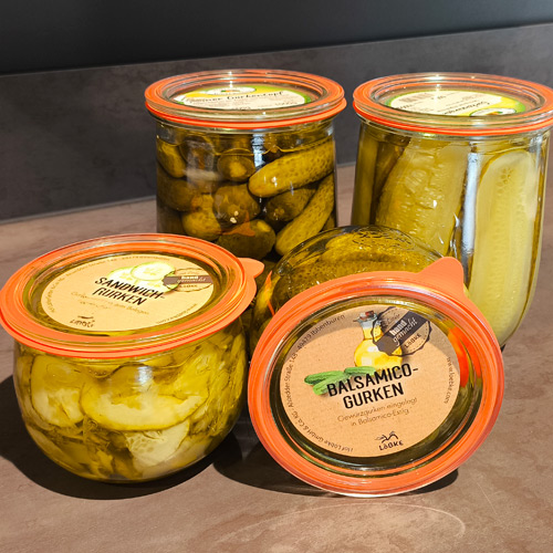 Verschiedene Sorten eingkochter Gurken