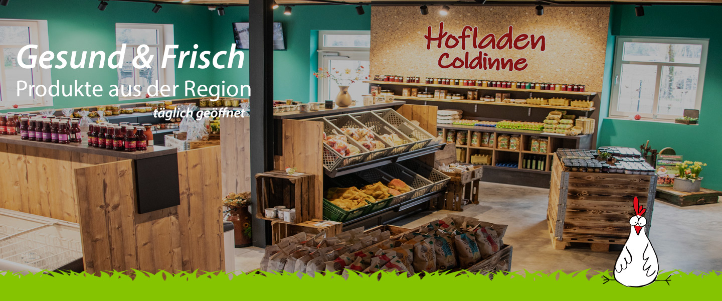 Produktübersicht Hofladen Coldinne, Kaffee & Kuchen und Coldinne Freilandeier