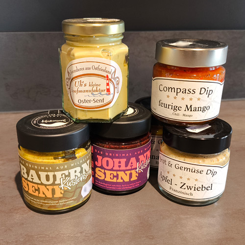 Bei uns finden sie Fleisch- und Grillprodukte, Dips, Senf, Gewürze und Öle.
